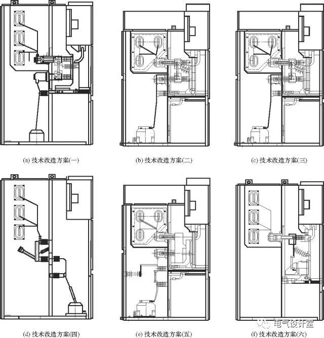 3、对于接线方式三,拆除原隔室的避雷器,将避雷器移到手车上改装成熔断器和避雷器共手车,封堵原母线室穿墙孔,增加手车下触头盒安装板、触头盒挡板及活门机构,将TV安装在后仓,通过引线连接至下触头上。该方案可在原手车上实施,也可考虑更换新手车。