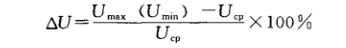 式中,ƒBmax为负载不变时的最高电压;ƒBmin为负载不变时的最低电压。ƒBmax和ƒBmin取同一负 载下同一次测埴的最大值和最小值。