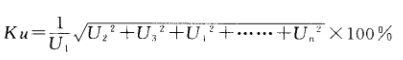 (9> 线电压波形正弦性畸变率。指线电压基波以外的各次谐波电压平方和的均方根值与 基波电压比值的百分数,用Ku表示。电压波形畸变率小,意味着输出的电压质量好。其计 算公式为: