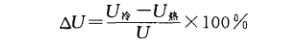 (12) 冷热态电压变化。指发电机组在额定工作状况下,从冷态到热态时电压变化率. 用ΔU;表示。变化率小,意味着从冷态到热态时电压稳定性好。其计算公式为: