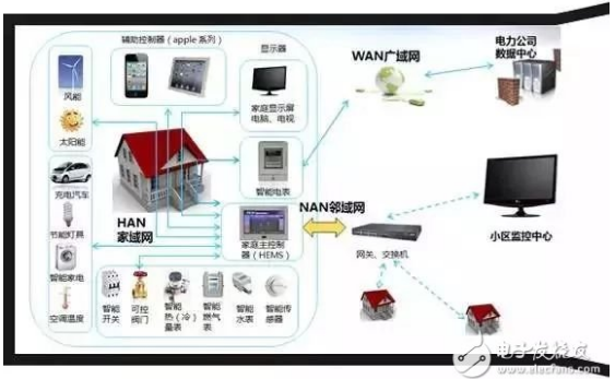 一幅全景式的智能电网家庭用户示意图