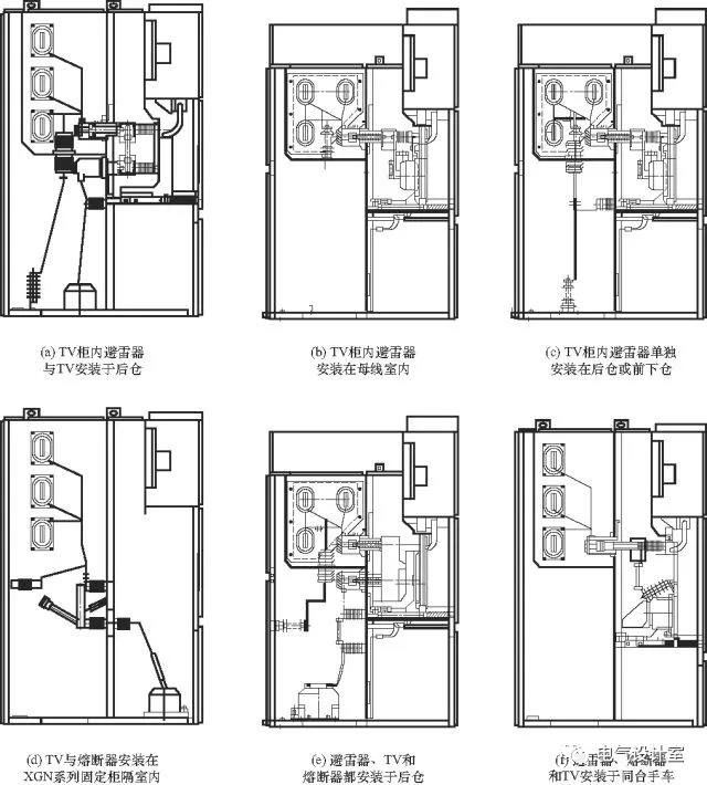 1、接线方式一:TV柜内避雷器与TV安装于后仓,熔断器安装在手车上,避雷器直接与母线相连,TV通过隔离手车与母线相连;