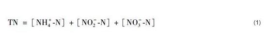 氨氮采用纳氏试剂分光光度法;亚硝酸盐采用N-1-萘基-乙二胺光度法;硝酸盐采用紫外分光光度法[16];VSS采用重量法测定;pH值的测定采用玻璃电极法.总氮采用式(1)进行计算: