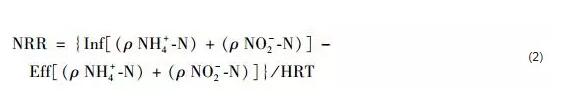 容积基质氮去除率[volume substrate nitrogen removal rate,NRR,kg˙(m3˙d)-1]采用式(2)进行计算: