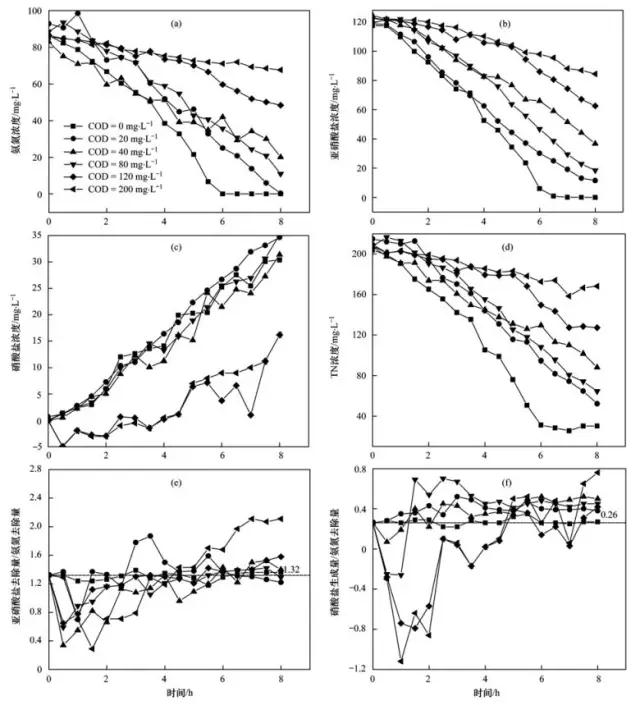 2.2 不同有机物浓度下的厌氧氨氧化脱氮过程