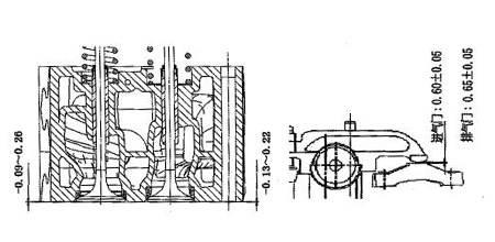 气门下沉量应严格控制:进气门下沉量为-0.09-0.26mm,排气门下沉量为-0.13-0.22mm。如图3.15。